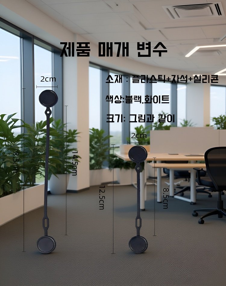 사무실 책상에서 케이블을 정리하는 마그네틱 스트랩